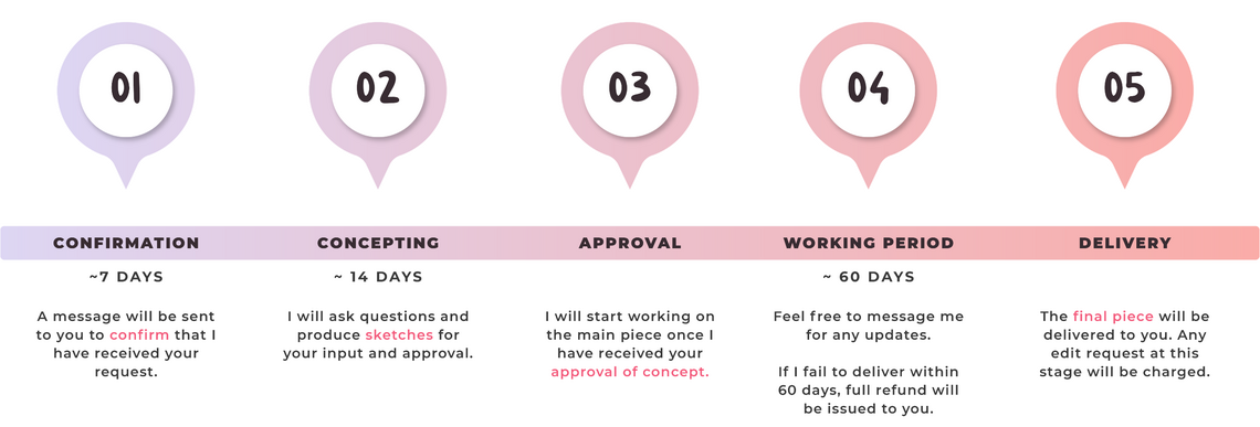 There will be no refunds when the commission work has been accepted and worked on (Unless I have failed to meet the deadline)